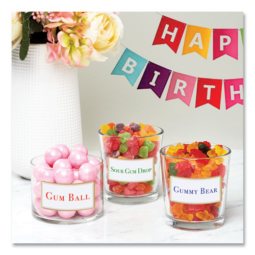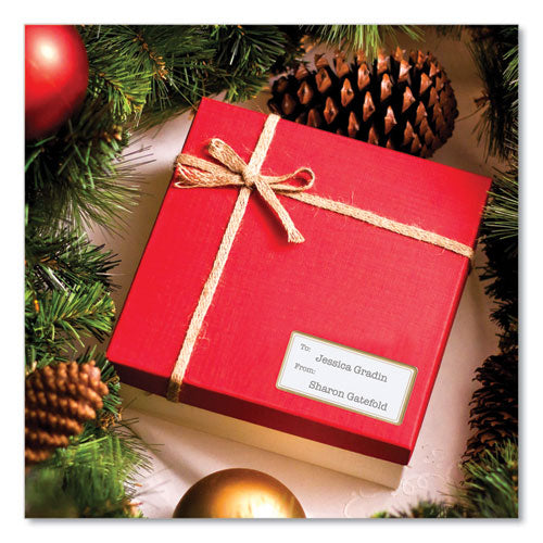 Remarkably reflective and elegant, Avery matte white rectangle labels with metallic gold borders bring a strikingly radiant shine to any event or project. Each rectangle label is pre-printed with a brilliant gold foil-like border that is guaranteed t