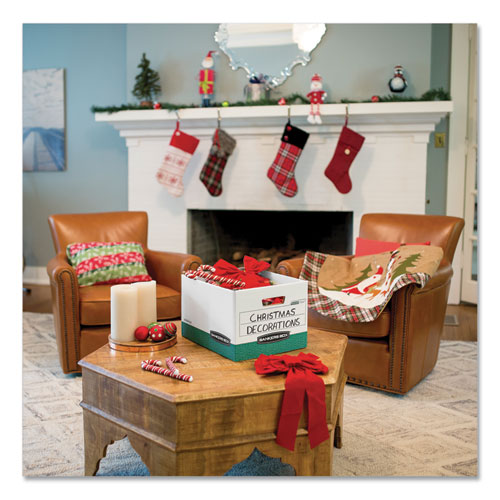 Bankers Box® R-Kive Heavy-Duty Storage Boxes, Letter/legal Files, 12.75" X 16.5" X 10.38", White/green, 12/carton