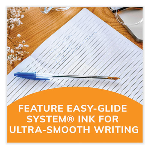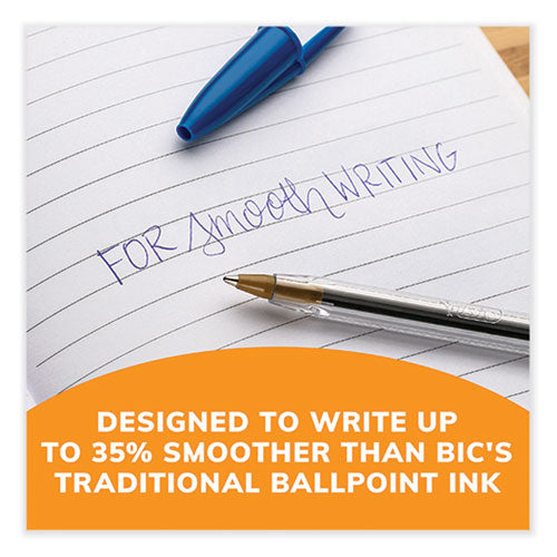 The Cristal® Xtra Smooth Ball Pen is The Pen America Grew Up With®. It has proven reliability, writing up to 35% smoother than BIC®'s traditional ballpoint ink. It features a roll-proof hexagonal-shaped barrel so it won't roll off surfaces. The cl