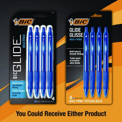 BIC® Glide Bold Ballpoint Pen, Retractable, Bold 1.6 Mm, Blue Ink, Translucent Blue Barrel, 4/pack