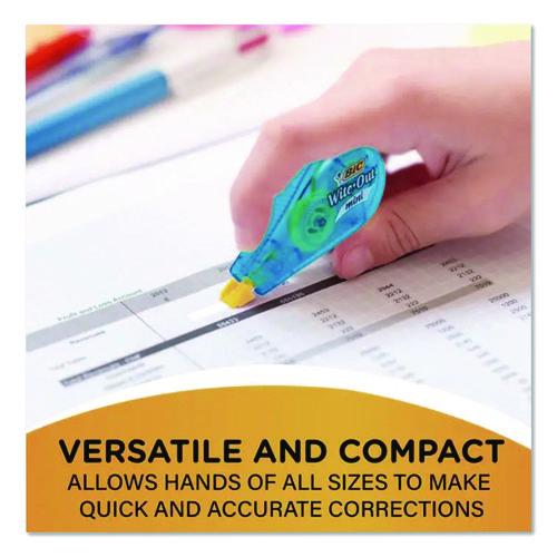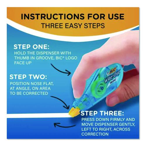 Convenient mini size. The integrated twist cap guards against tearing, and the tape itself is tear-resistant and film-based. Fixes mistakes fast. It's great for the home, school or office. Write or type over it immediately after you use it. 3 Per Pac
