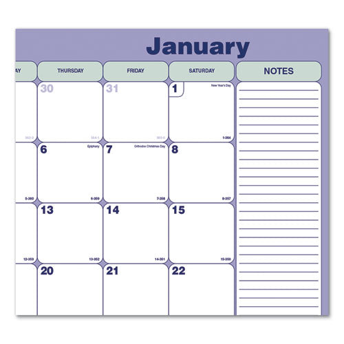Stay organized with this helpful desk pad. It features a familiar one-month-per-page layout with a one-block-per-day format. A one-year reference calendar at the bottom of each page helps with long-term planning. The pads reinforced chipboard backer
