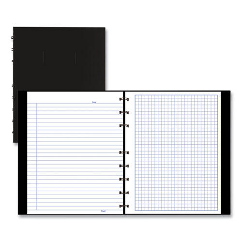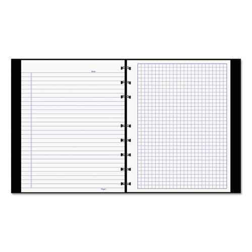 Durable hard cover provides increased writing stability. Twin-wire binding allows book to lie flat when open. Right side is quad-ruled; facing page ruled for notes. Includes colored adhesive labels to customize index and covers. Microperforated pages
