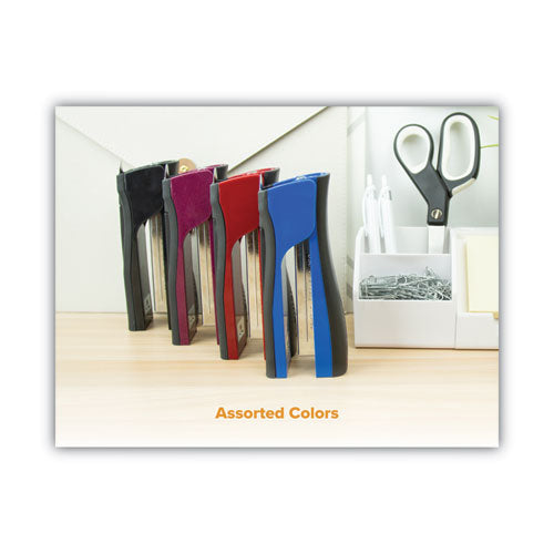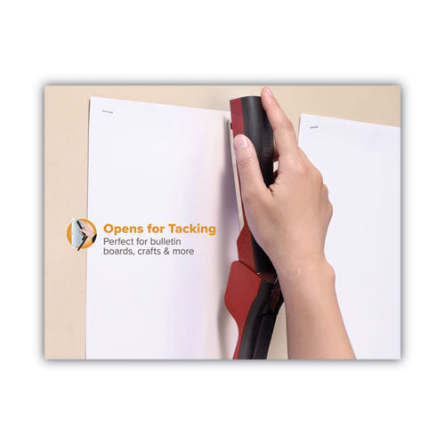 A gadget lover's dream. Antimicrobial product protection. Full-strip stapler amazingly features a built-in pencil sharpener, staple remover, and a StapleStore compartment (stores two extra staple strips). Efficient, yet lightweight, the curved silhou
