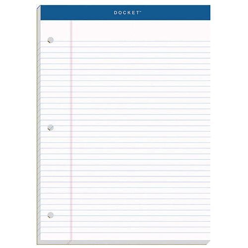 These TOPS Docket Writing Pads have double the sheets of ordinary writing pads and extra-strong backs for firm writing support and superior stability. Sheets fit common file folders-no folding necessary. 3-hole punched. Heavyweight paper resist