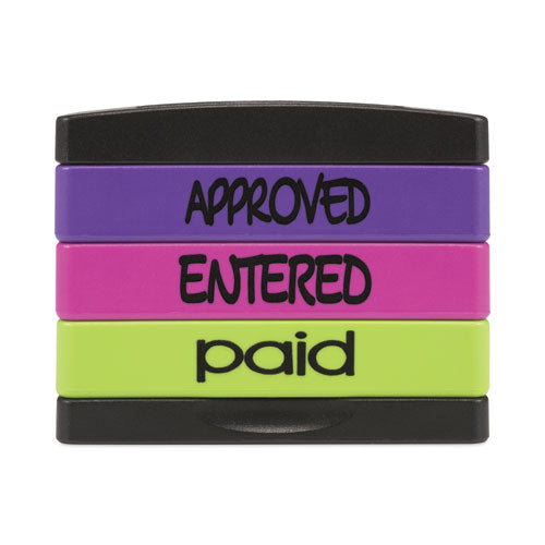 Innovative design allows you to interlock multiple stamps in one continuous stack. Convenient for storage and effortless use. Vibrant, fluorescent ink colors and fresh fonts provide style. Crisp, clean impressions from the microporous gel. Ink lasts