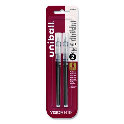 uniball® Refill For Vision Elite Roller Ball Pens, Bold Conical Tip, Black Ink, 2/pack