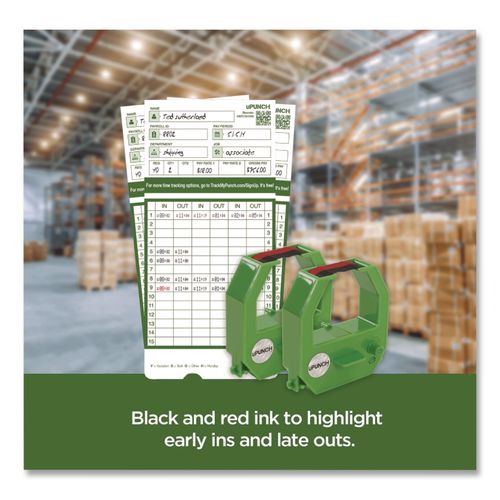 Designed to work efficiently with your uPunch time clock, this two-color ink ribbon accurately prints your employee in and out punches. The two-toned replacement ribbon prints in black and red ink to highlight early and tardy employee punch times.