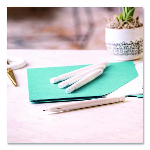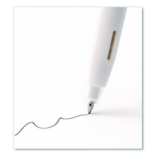 The Zebra bLen retractable gel pen features an internal system that eliminates writing vibration. A lower center of gravity was established by placing a brass weight at the tip of the pen. The weight allows for a smooth and gentle touch to the paper,