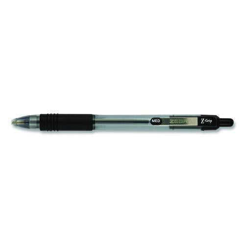 Zebra® Z-Grip Ballpoint Pen, Retractable, Medium, 1 mm, Black Ink, Clear/Black Barrel, 96/Pack