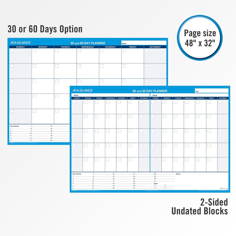 - Reversible format has a 30-day calendar on one side and 60-day calendar on the other.