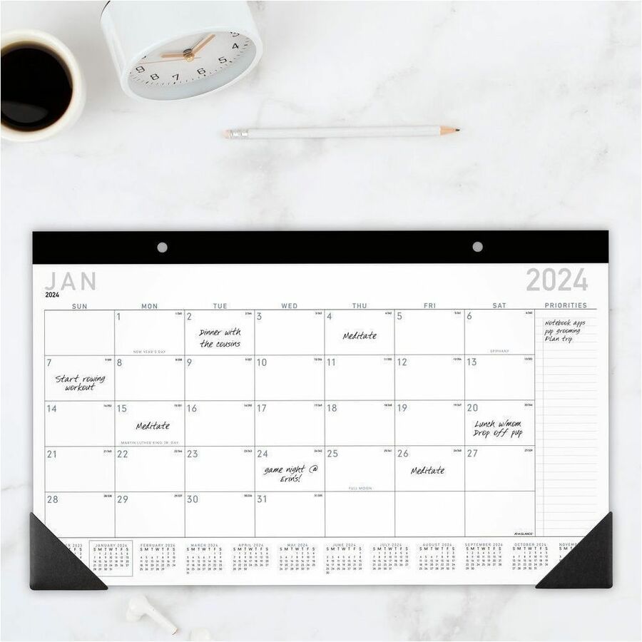 Contemporary desk pad features a fashion-forward color scheme and design elements. Monthly protection for your desktop with a full 12 months of planning. One month per page with unruled daily blocks to write in notes and reminders on each date. Extra- Features a fashion-forward color scheme and design.