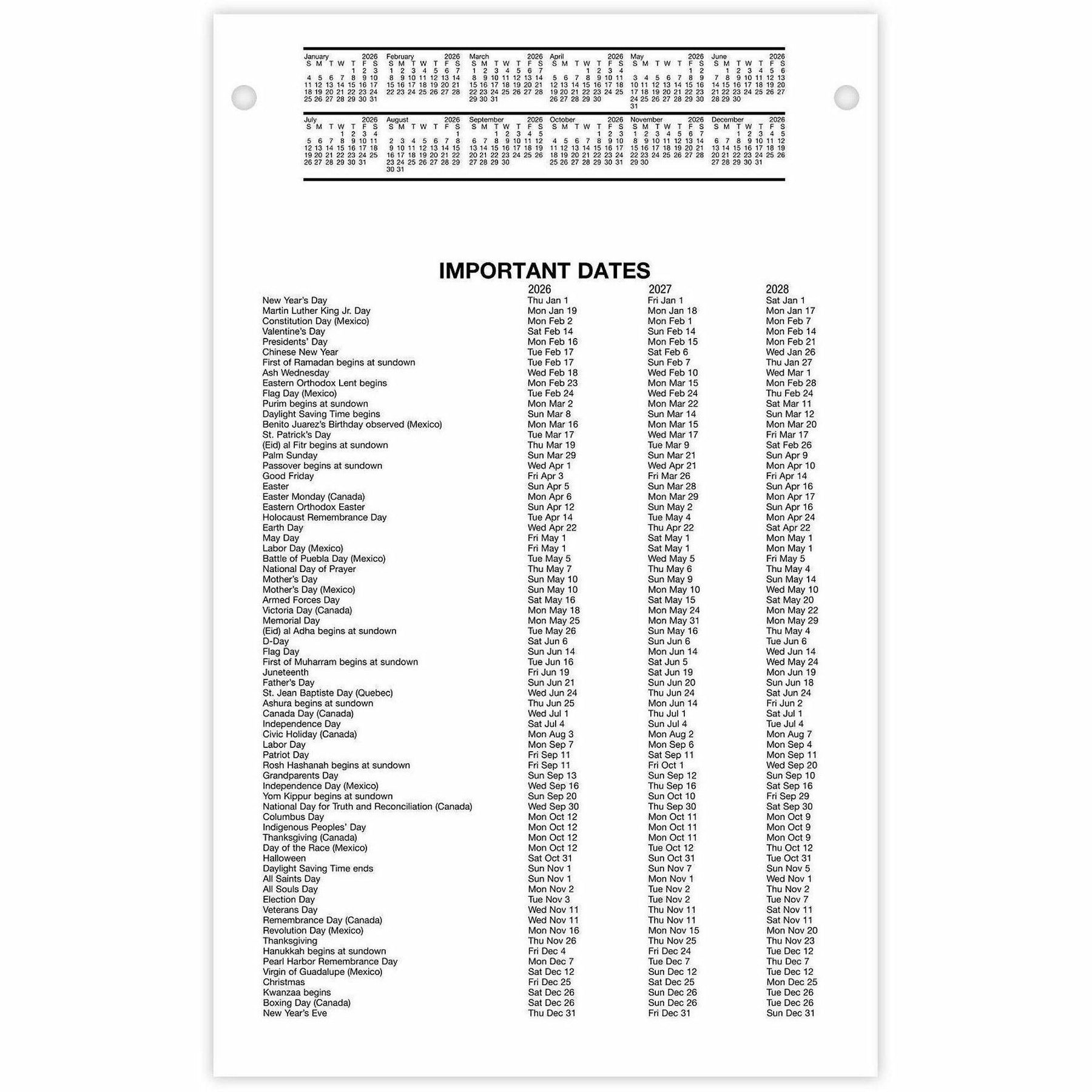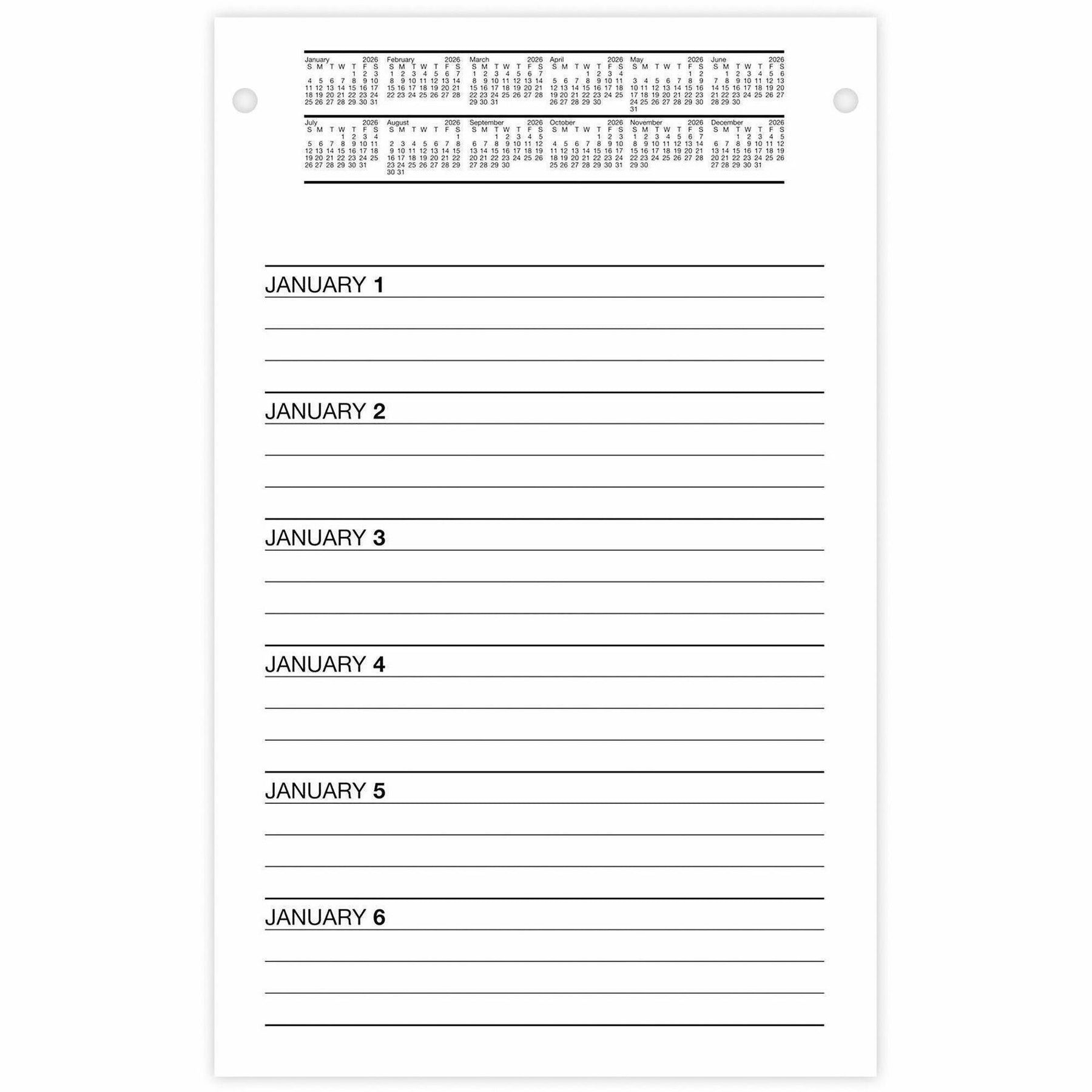 Pad-style, daily calendar refill is a great addition to your desk to help you keep track of your busy schedule in E58-style bases (sold separately). Dated planning pages range 12 months from January to December. One-page-per-weekday format includes r
