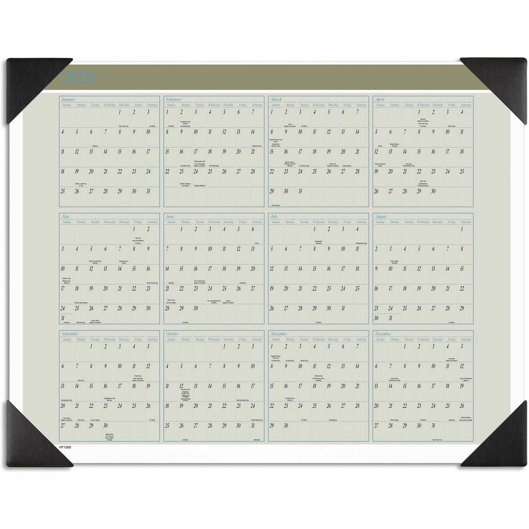 - Full-year reference calendar at the top of