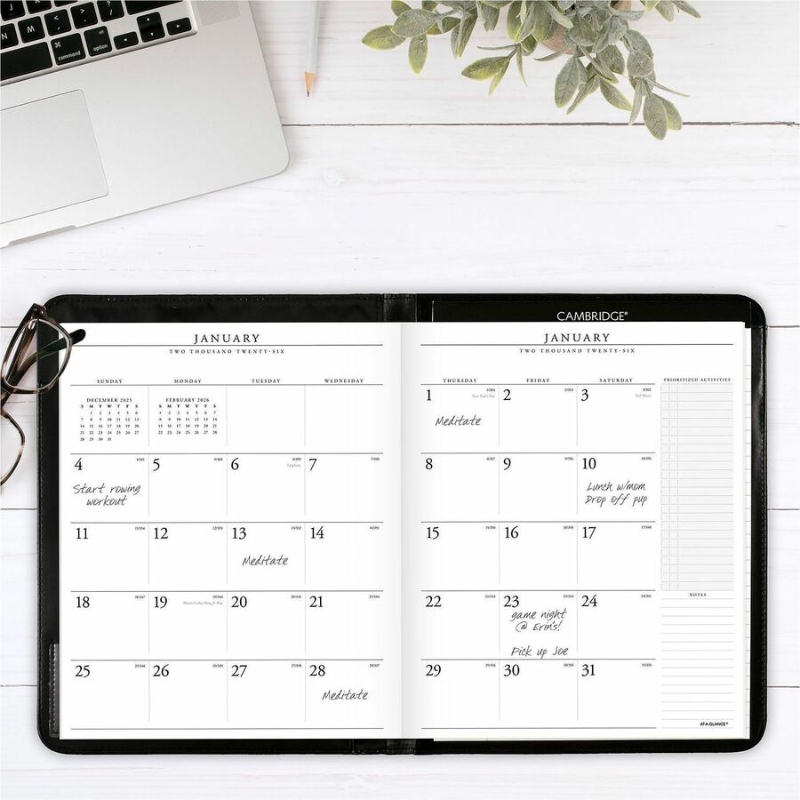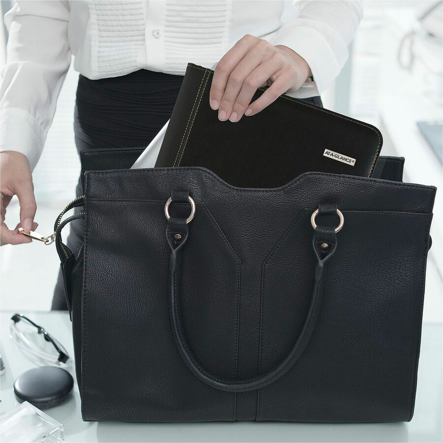 - Features space for prioritized activities and notes; storage pockets and business card holder.