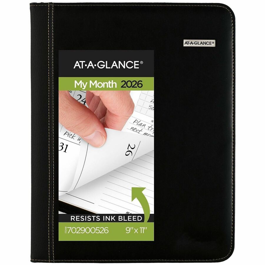 Sophisticated sewn cover and monthly format design. Premium paper resists ink bleed. Features space for prioritized activities and notes as well as storage pockets and a business card holder. One month per two-page spread with unruled blocks; past an- Sophisticated sewn cover and format design.