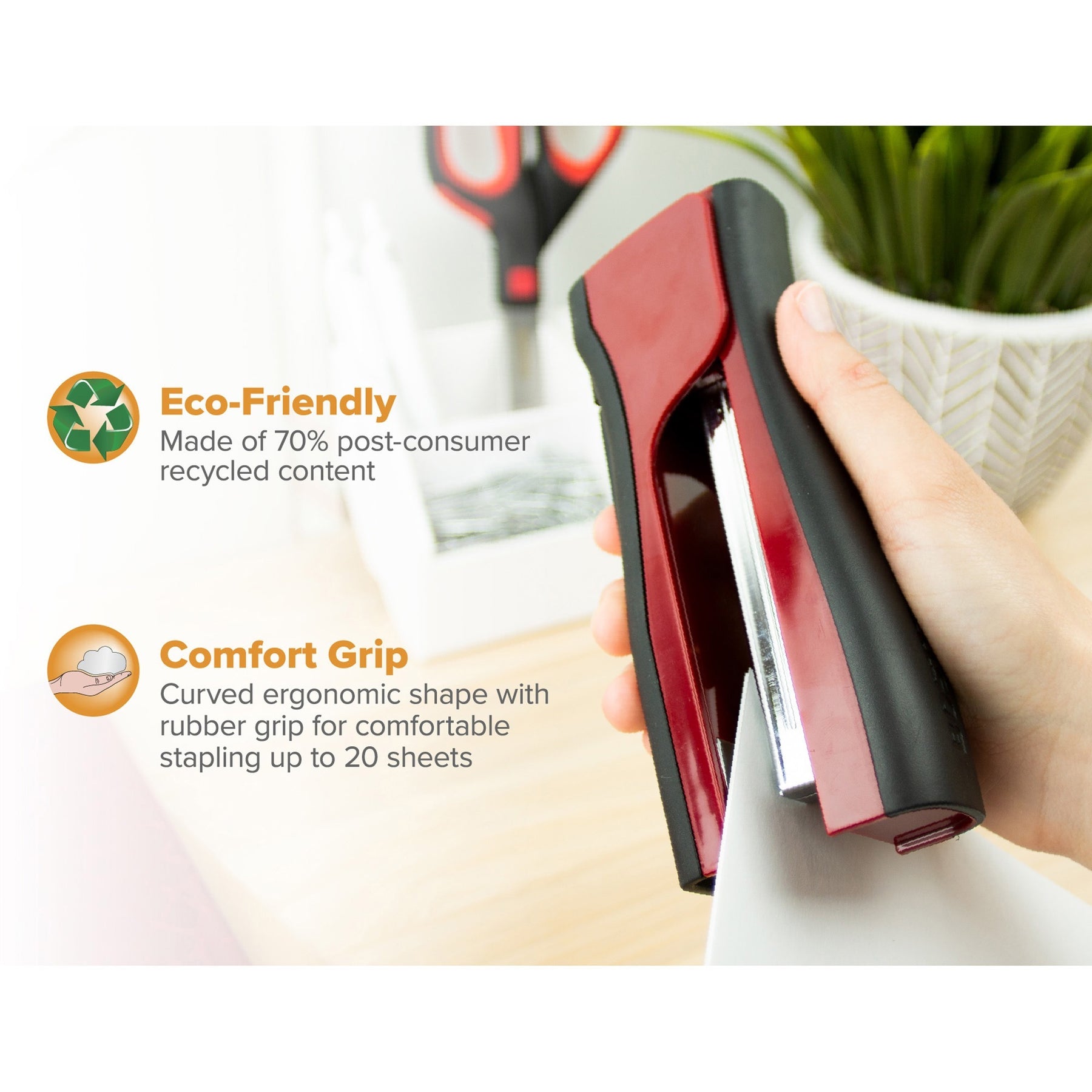 A gadget lover's dream. Antimicrobial product protection. Full-strip stapler amazingly features a built-in pencil sharpener, staple remover, and a StapleStore compartment (stores two extra staple strips). Efficient, yet lightweight, the curved silhou