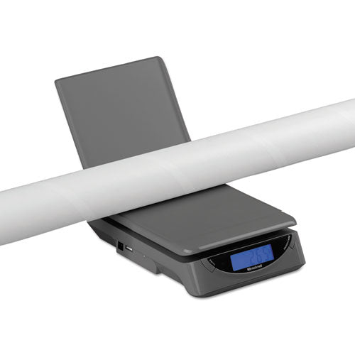Simple weight-only electronic scale which is perfect for letter and small parcel mail. Ensures correct postage without overpayment. Low profile design is easy-to-use and store. Features a flip-up letter stand to hold large envelopes/tubes. USB interf