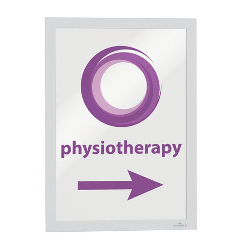 The Infoframe DURAFRAME is a self-adhesive, letter-size format info-frame. It presents information in a high-quality and professional way with quick insertion and replacement of documents via a