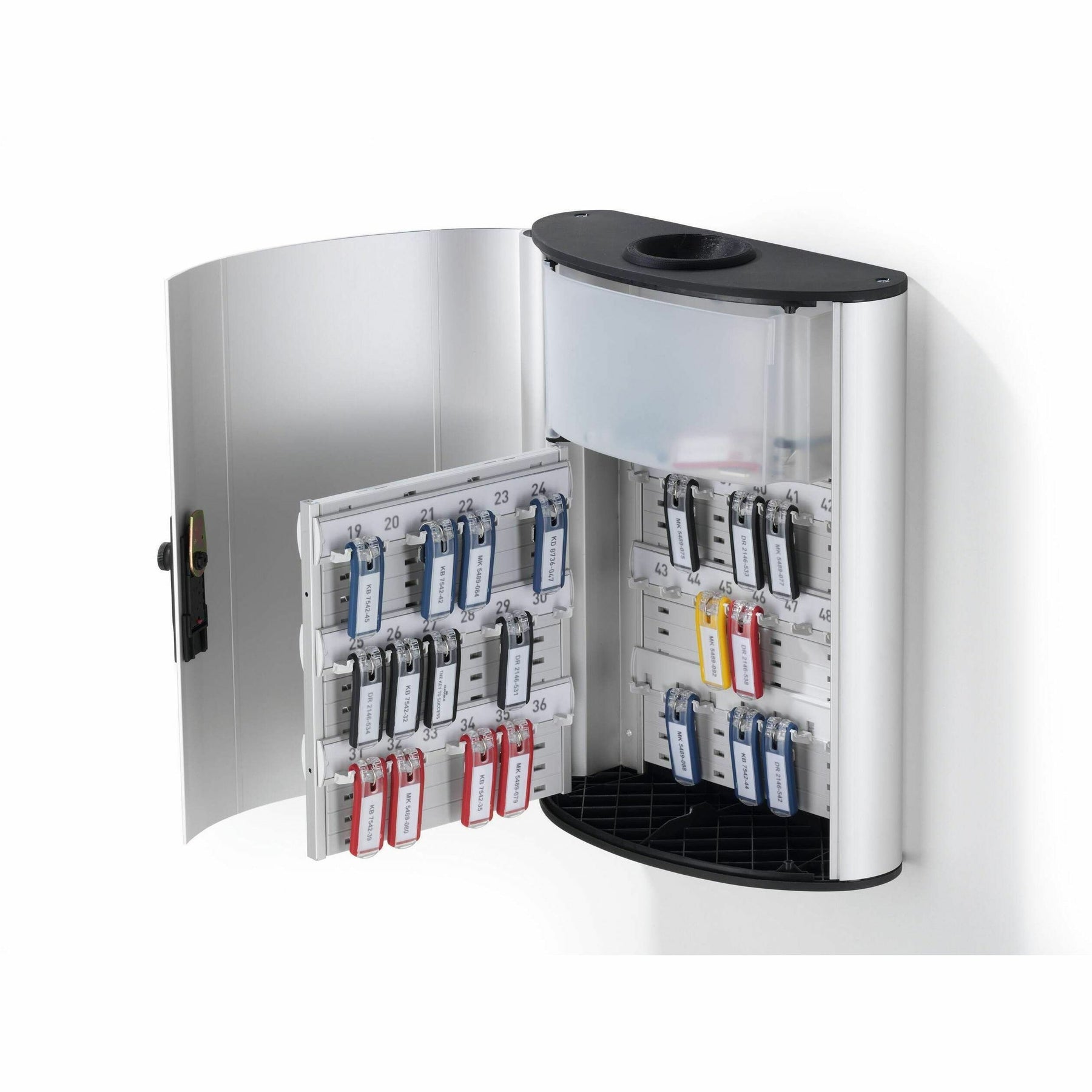 Unlock effortless organization with the 54-Key Capacity Key Cabinet from DURABLE®. This German-designed organizational tool is crafted for efficiency and longevity. Say goodbye to the frustration of hunting down misplaced keys, this wall-mounted key