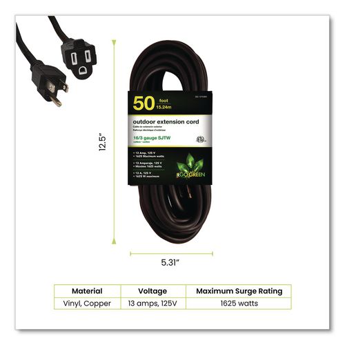 GoGreen Power GG-13750BK 16 AWG Outdoor Extension Cord, 50 ft, 13 A, Black