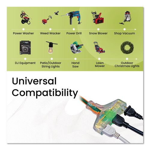 When the going gets tough, the tough get going, and the GoGreen Power lives up to that! The robust and durable, contractor grade 14/3 SJTW three-outlet extension cord is ready to rumble, both i