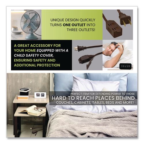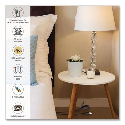 GoGreen Power two-prong extension cord comes equipped with three outlets and is rated for indoor use only. Each extension cord is fixed with a child safety cover for extra protection. The 16 ga
