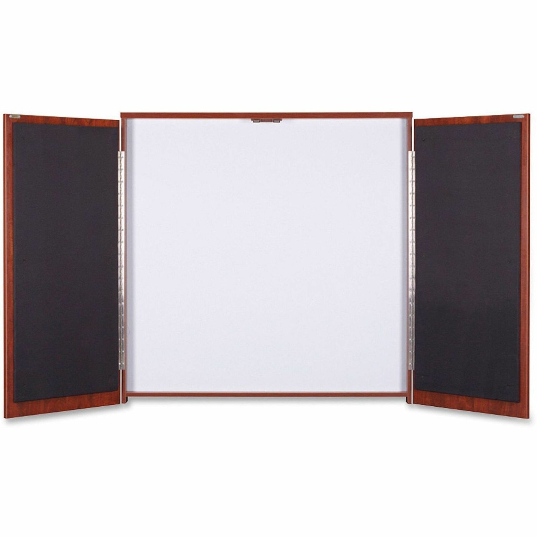 Presentation cabinet offers an elegant solution for your meeting needs. Hinged doors close to hide the dry-erase surface inside and possibly your important brainstorming. The 18mm laminate doors with 2mm matched edgebanding are lined in black fabric