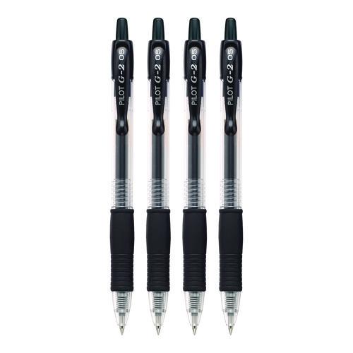Pilot® 31055 G2 Premium Gel Pen, Retractable, Extra-Fine 0.5 mm, Black Ink, Smoke/Black Barrel, 4/Pack