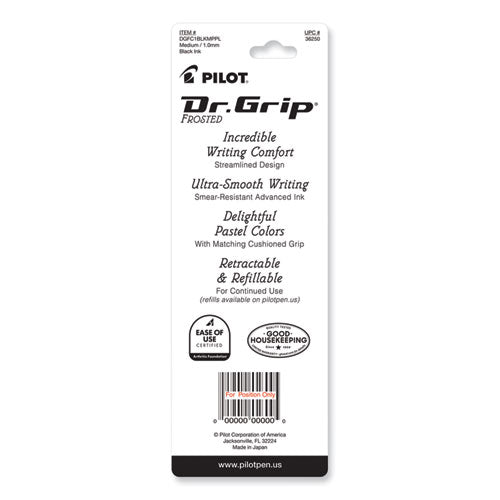 Pilot® 36250 Dr. Grip Frosted Advanced Ink Ballpoint Pen, Retractable, Medium 1 Mm, Black Ink, Purple Barrel