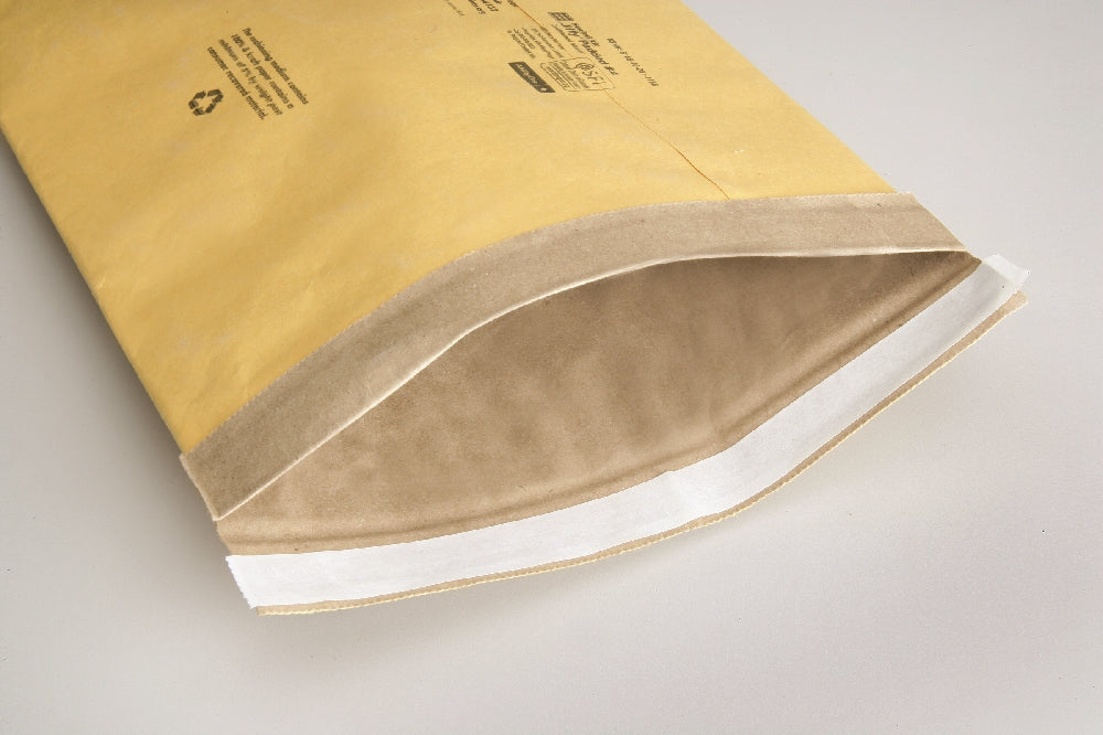Macerated paper padded mailers consist of 2 layers of Kraft paper with a uniformed inner cushion medium of macerated paper inserted between the layers. The outer layer of Kraft is water-resistant. A self-sealing flap extends the entire width of the s