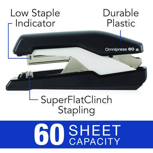 Swingline® 5000590 Omnipress So60 Heavy-Duty Full Strip Stapler, 60-Sheet Capacity, Black/gray