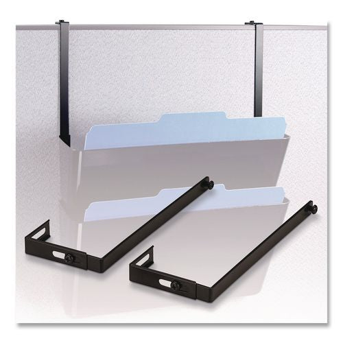 Partition Hangers let you hang wall files, cubicle accessories, sign holders, literature holders and wall desk accessories/holders that feature keyhole openings for hanging. Metal, 7" long hangers can be adjusted to fit partitions from 1-1/4" to 3-1/