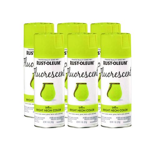 Rust-Oleum® 342571 Specialty Fluorescent Spray Paint, Flat Fluorescent Yellow, 11 oz Aerosol Can, 6/Carton
