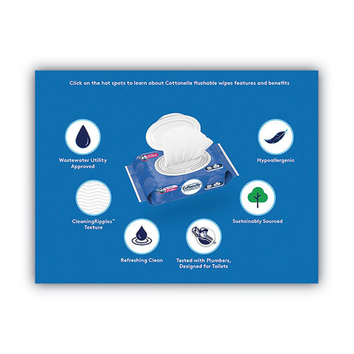The Cottonelle flushable wet wipe is 100% flushable and is endorsed by the WasteWater Utility (JEA). Designed for toilets and tested with plumbers. The wipe begins breaking down immediately after flushing. Stored in a resealable pack to preserve fres