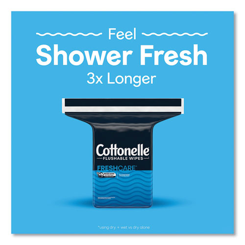 For a superior clean that's fresh, gentle, and effective, choose Cottonelle® FreshCare Flushable Wipes with the CleaningRipples Texture. Cottonelle® bathroom wipes are 100% flushable, remove odor-causing bacteria and offer a large, dual layer w