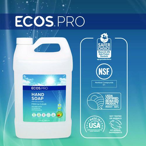 ECOS PRO liquid hand soap is a better choice for your hands. The crystal clear plant-powered formula is specifically designed to lift dirt and grease, while being gentle enough for even the most frequently washed hands. Infused with nourishing vitami- Crystal clear plant-powered liquid hand soap formulated to lift dirt and grease, but gentle enough for even the most frequently washed hands.
