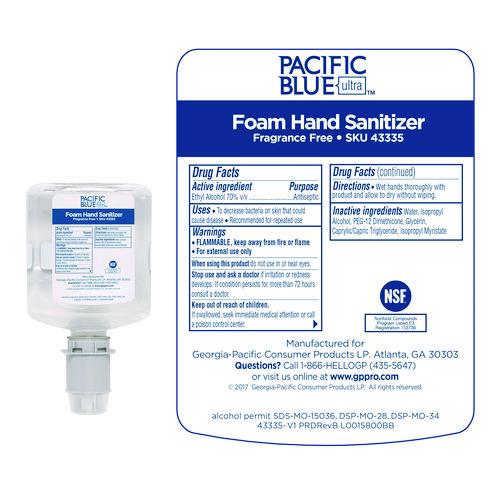 Image of Georgia Pacific® Professional Pacific Blue Ultra Foam Hand Sanitizer Refill For Manual Dispensers, 1,000 Ml, Fragrance-Free, 4/carton