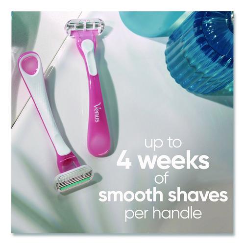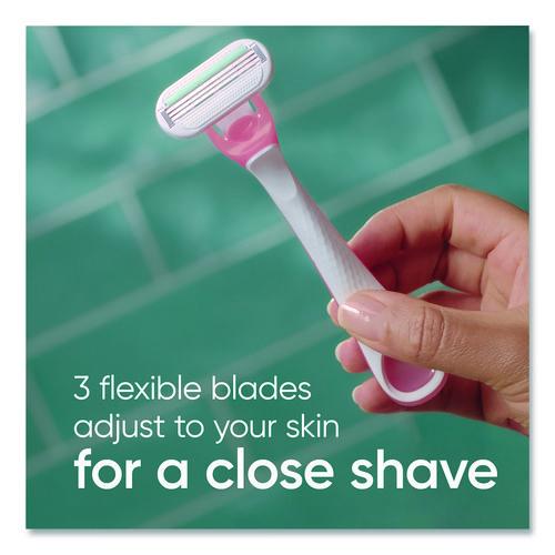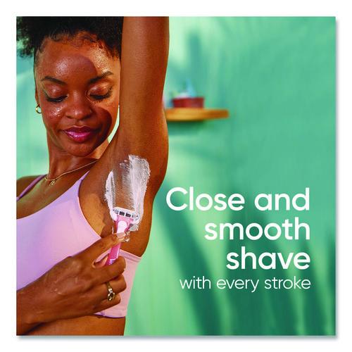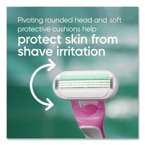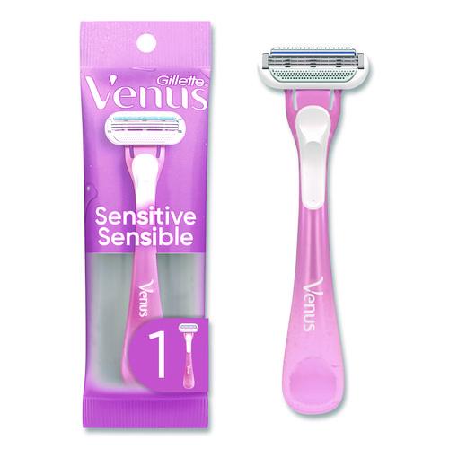 The Gillette Venus Sensitive female razor blade is designed with a woman's body in mind. The razor is made for women with sensitive skin. This razor features three curve-hugging blades for a shave with up to 0% irritation, and cuts hair closer to the