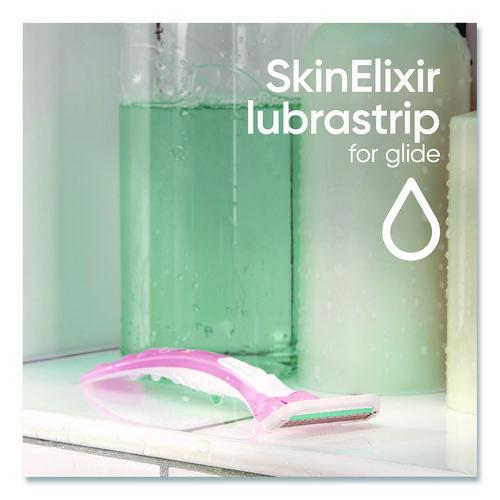 - Three blades and gliding SkinElixir Lubrastrip deliver a close shave with ease and comfort.