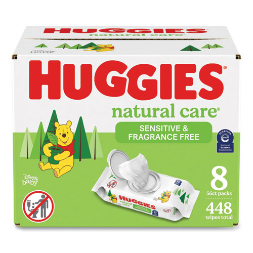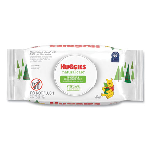 Huggies® Natural Care® Sensitive Baby Wipes are plant-based wipes, made with 99% purified water and 1% skin essential ingredients for a gentle clean. Infused with aloe and vitamin E, the unique base sheet locks-in and absorbs the mess to help keep