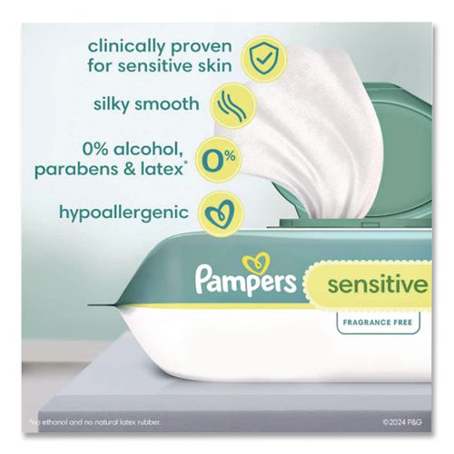 Pampers® Sensitive Baby Wipes, 1-Ply, 6.8 x 7, Unscented, White, 56/Pack