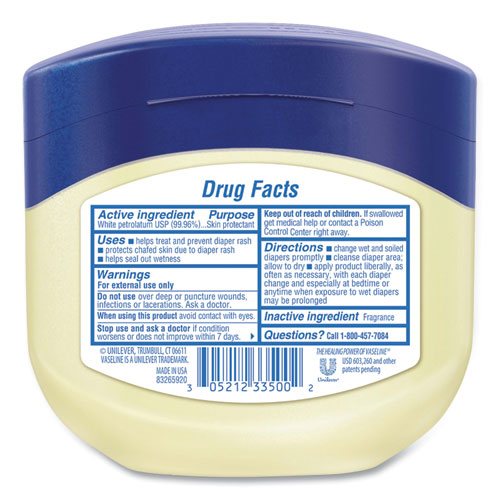Provides dry skin relief. Made with pure petroleum jelly, the product is gentle on skin. Dermatologist-tested, and non-comedogenic. Helps protect minor cuts, scrapes and burns. Product Packaging: Jar; Volume Capacity: 13 oz.
