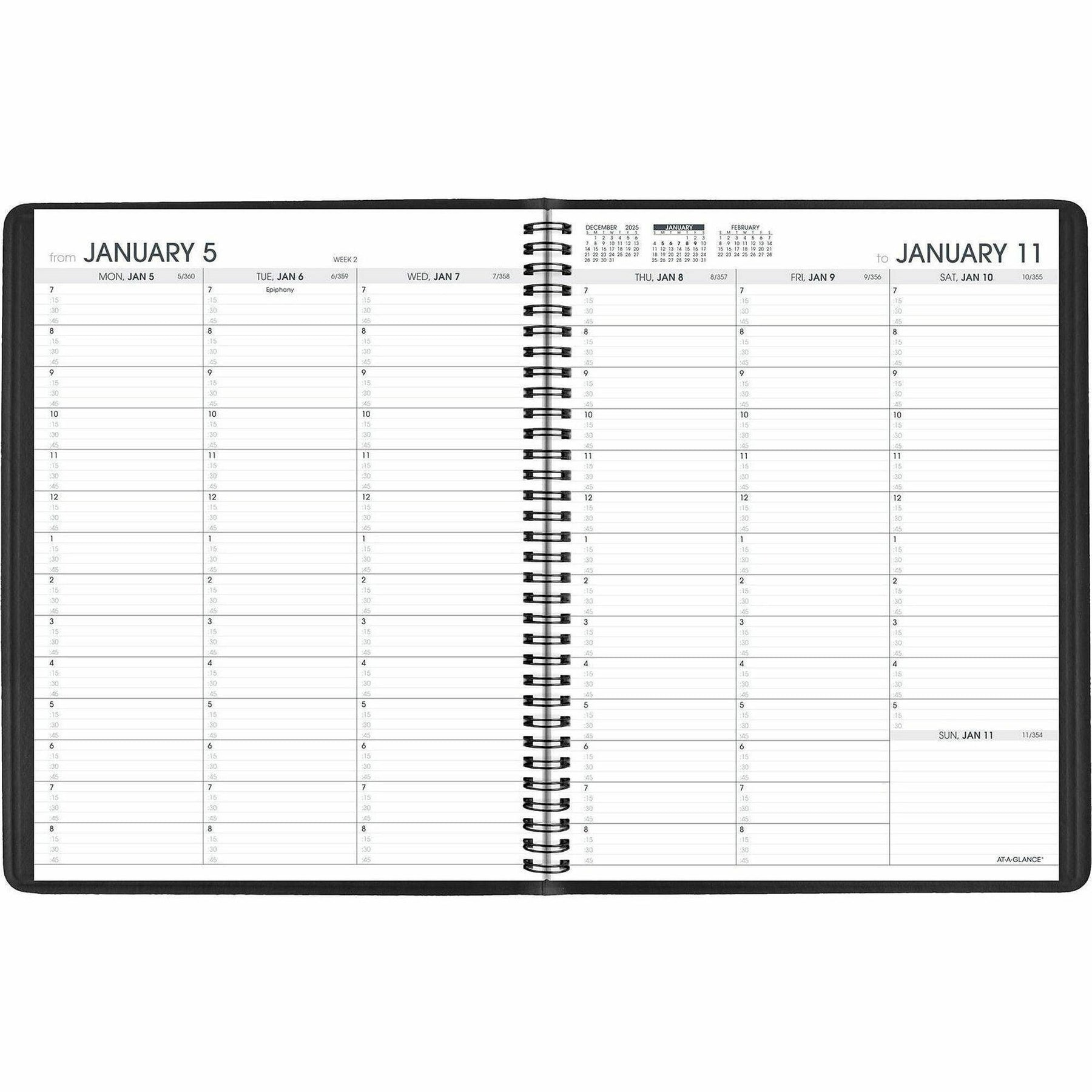Plan out your week, one day at a time. One week per two-page spreads feature a columnar format and 15-min appointment slots Monday through Saturday for high-precision scheduling. On Sundays you'll find open-scheduling for maximum flexibility. To help- Plan out your week, one day at a time.
