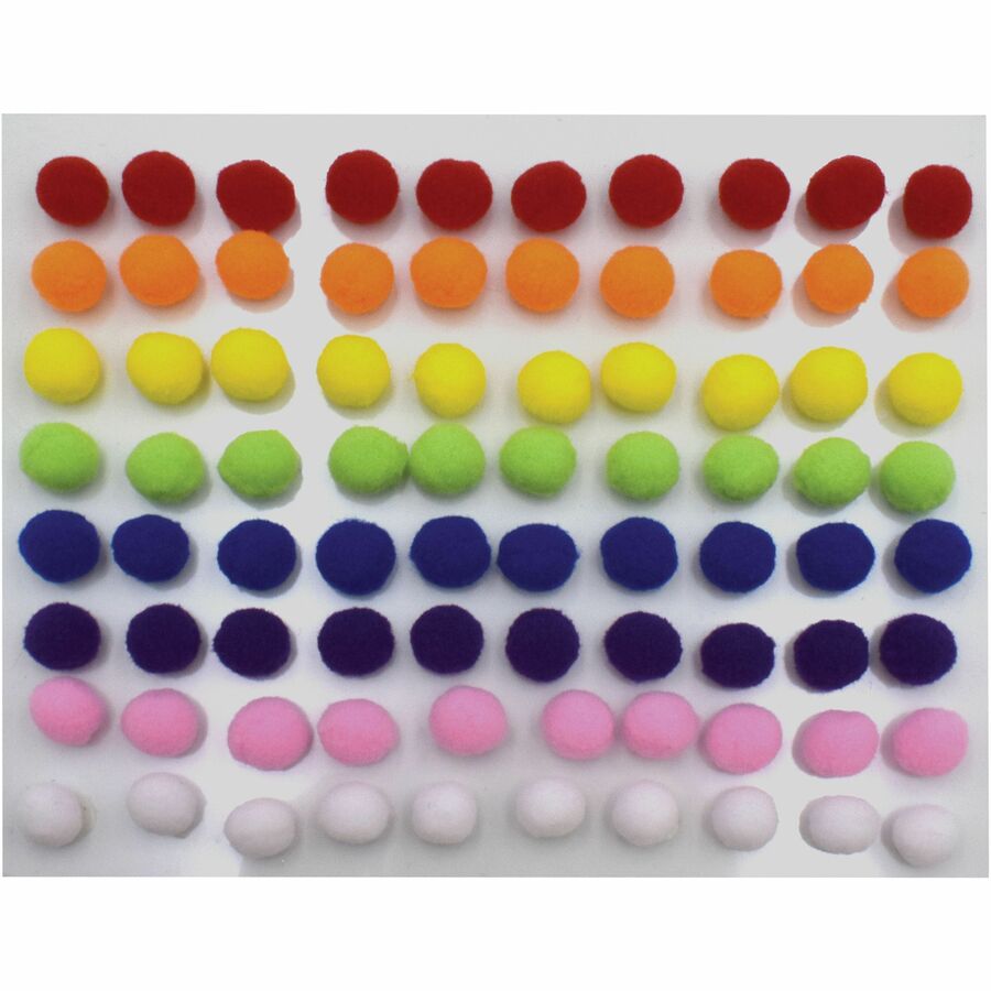 Add texture, dimension and color to any project with these peel-n-stick pom pons. Self-adhesive backing lets you simply peel and stick these anywhere to eliminate the need for messy glue. Soft, plush material allows your young learners to safely handle each pom pon. Assorted colors include white, pink, purple, blue, yellow, orange, green and red.