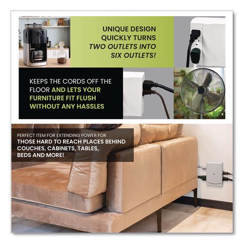 The GoGreen Power Swivel Wall Tap features six outlets conveniently designed to fit behind furniture and appliances. Excellent for use as a charging station, and perfect for use with larger electronics such as computers, printers, smartphones, tablet- Features six outlets conveniently designed to fit behind furniture and appliances.