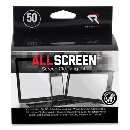 Convenient AllScreen® Cleaning Kit contains everything needed to keep screens clean. From smartphones to computer monitors, this handy kit handles them all. Kit contains individually wrapped wipes that are pre-saturated with an alcohol- and ammonia-