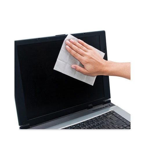 Heavily saturated wet wipe neutralizes static and removes dust, dirt and oil. Strong, dry, absorbent cloth dries and polishes screen to streak-free clarity. Ideal for large or heavily soiled computer and display screens, TVs and more. Not for use on