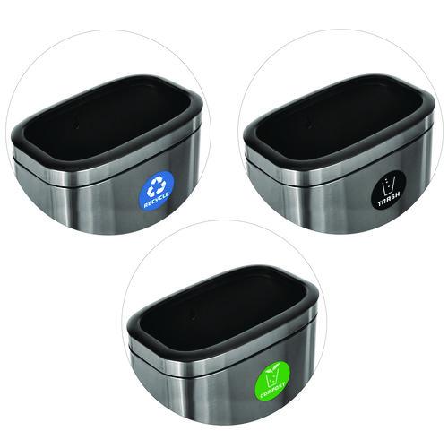 When equipping your business's interior with waste receptacles, you want to be reassured it will survive constant daily use and add to your company's aesthetic. With our modern, multi-stream waste management slim open 10.5 Gallon Stainless Steel Recy- Expertly constructed using durable, brushed stainless steel, these slim open recycling/trash cans will hold up well against everyday wear and tear to make it ideal for frequented locations.