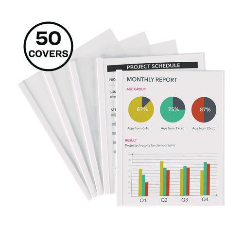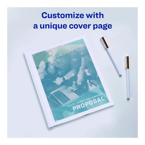 Prepare papers for presentations, proposals, or business meetings with these report covers. The sliding bars fit neatly over the edges of your pages, eliminating the need for staples, paper clips, or hole punches. These Avery report covers feature cl